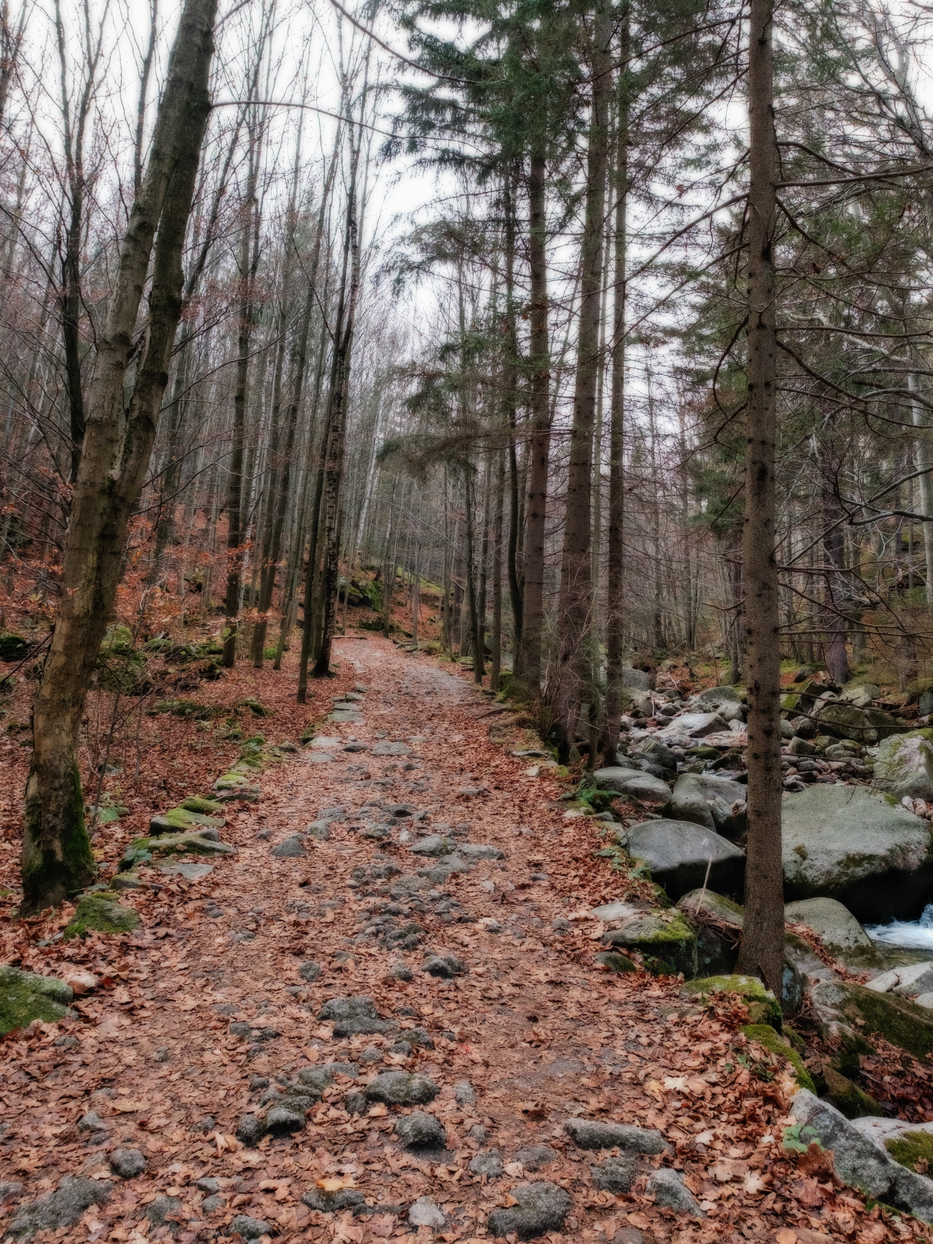 Po dłuższej przerwie fotograficznej, spowodowanej pracą nad wydaniem mojej szóstej książki, wracam do kadrów wykonanych w listopadzie 2024 roku. Dziś kilka ujęć ze spaceru w kierunku kaskady Myi, potoku, którego źródła znajdują się na zboczach Smogorni, na wysokości 1275 m.n.p.m. Nastrój listopadowego, mokrego, zachmurzonego dnia wspaniale współgrał z surowym klimatem gęstego lasu. Oto kilka fotografii z tych okolic, wykonanych aparatem Fujifilm XT-5.