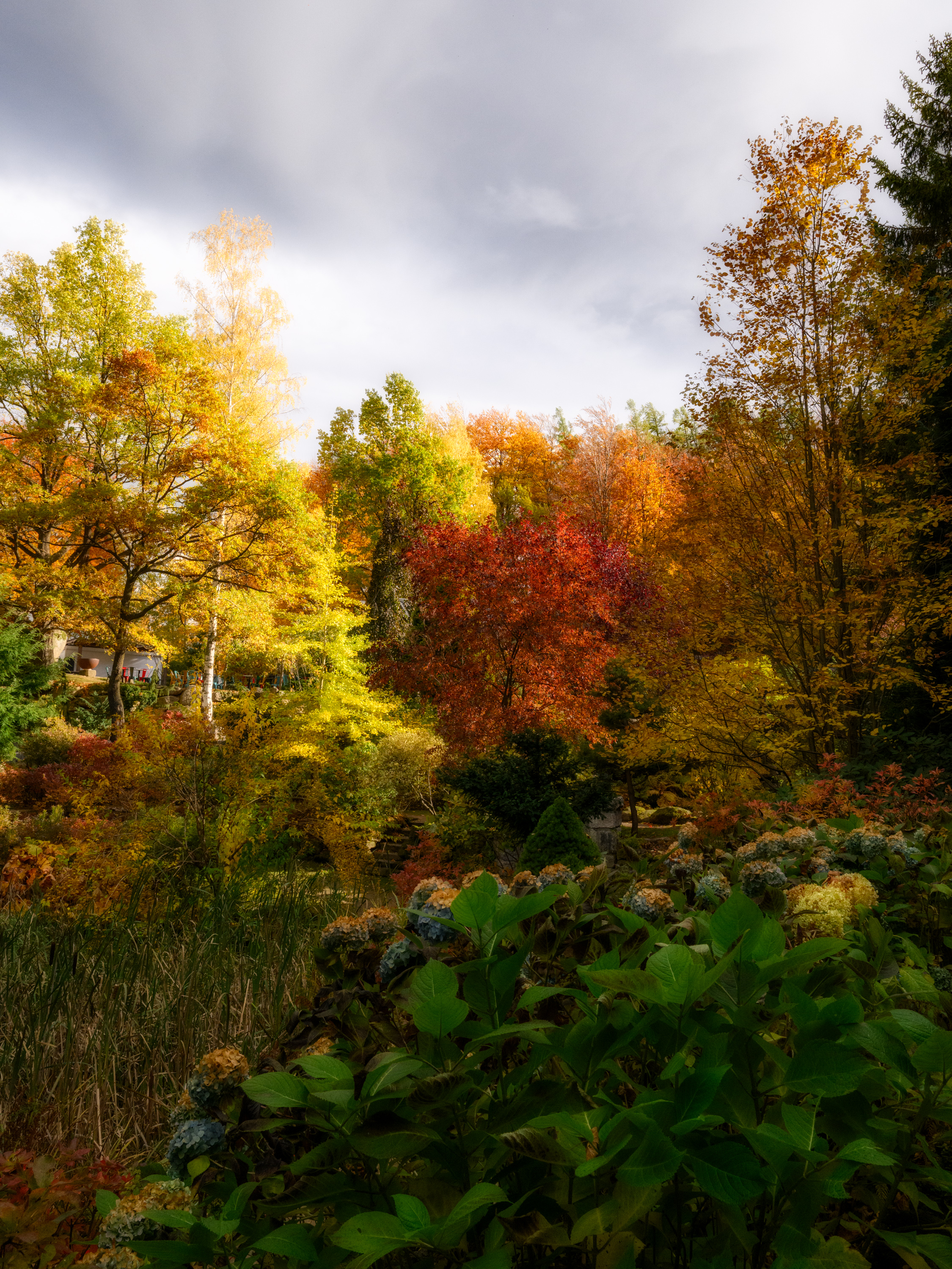 W marcu mija rok od wielkiej rewolucji w moim sprzęcie fotograficznym. Dokonałem znamiennej wymiany sprzętu systemu micro 4/3 oraz Fujifilm X wraz z obiektywami na Nikona Z8 wraz z nowymi obiektywami. Z Nikonem byłem od początku mojej fotograficznej przygody. Jeśli dobrze pamiętam w 2006 roku kolega z pracy zafascynował mnie opowieścią o możliwościach lustrzanek. Było to wtedy, gdy posługiwałem się kompaktowym Canonem. Słuchałem go z wielkim zaciekawieniem, potem przyszła pora na badanie rynku i odwieczny dylemat: Canon vs Nikon. Padło na tego drugiego, chociaż nie wiem dlaczego tak wybrałem? Przypuszczam, że na przekór trendom. Canon zawsze był wyżej notowany. Zrobiłem więc na przekór trendom. Pierwszą moją lustrzanką była D80, do której zacząłem kompletować optykę. Zakupiłem ją z kitowym obiektywem, chyba 55-70 mm z jakimś ciemnym światłem. Nie pamiętam. Zaczęła się wtedy przygoda fascynacją fotografią oraz niebywale szybko zmieniającą się technologią w tej dziedzinie. Pamiętam kiedyś w Kołobrzegu, siedząc na tarasie słynnego „Grzybka”, przygadałem się mężczyźnie, który dumnie przykładał do oka wizjer Nikona D200, który wyposażony był już w pełną klatkę. Zamarzyłem o takim sprzęcie. Ziściło się to kilka lat później, kupiłem Nikona D300 i D300s dla potrzeb studia, które wykonywało zlecenia fotografowania ślubów i wesel. Kolejnym aparatem ze stajni Nikona był D700. Wspaniały pełnoklatkowy kombajn, moja ukochana lustrzanka, którą sprzedałem z obiektywami Nikona z mocowaniem F na rzecz wspaniałego OMD-EM1 wraz z optyką micro 4/3. Po latach na allegro kupiłem D700 tylko i wyłącznie z przyczyn sentymentalnych i do dziś zajmuje zaszczytne miejsce w mojej galerii starych aparatów. Po Nikonie D700 nastąpiła długa przerwa w mojej przygodzie z tą marką. Dopiero kilka lat temu moja firma na potrzeby służbowe zakupiła bezlusterkowca Z6II. I miłość odżyła. Długa przygoda w Olympusem skończyła się właśnie w 2025 roku. Czy z perspektywy czasu była to dobra decyzja? System micro 4/3 Olympusa i obecnie OM Systems to nadal jest topowy i dający efekty pracy o najwyższej jakości. Wykonałem tym sprzętem bardzo dużo ładnych fotografii. Zaletą aparatów OM są ich niewielkie gabaryty, ogromna ilość fantastycznych funkcji, bardzo przystępne menu oraz niezastąpiona stabilizacja matrycy. Wiadomo, łatwiej wystabilizować matrycę o wymiarach micro 4/3 niż średnioformatową. System Olympusa to również doskonała optyka, niepowtarzalna, doskonała. Niestety, niewielki format matrycy wiąże się z utratą jakości oraz kłopotami w uzyskaniu płytkiej głębii ostrości. Według wielu opinii fachowców rozwój systemów micro 4/3 jest mało perspektywiczny. Ale nie ukrywam, jest mi szkoda tego sprzętu. Drugi system, którego się pozbyłem to Fujifilm X z aparatem X-T5 wraz z kilkoma obiektywami. Tu miałem do czynienia z matrycą APS-C z cropem chyba 1,5. Niewielki, poręczny aparat z niezłą rozdzielczością, dobre szkła, tylko… nie zaiskrzyło między nami. Chyba jednak największą wadą aparatów Fujifilm było dla mnie nieczytelne menu. Co zatem w zamian? Ano właśnie Nikon Z8 oraz dodatkowe szkła ze stajni Nikona. Aparat dość duży, pełnoklatkowy, z doskonałą ergonomią, taki topowy Z9 bez dodatkowego gripa. Doskonały sprzęt, dobra stabilizacja matrycy, fotografie jakościowo wyśmienite, szkła również fantastyczne. Nic tylko pstrykać. Mam tylko takie wrażenie, że współczesne szkła Nikona z mocowaniem Z, to już nie ten sam wyrób co szkła do bagnetu F. Te stare w dotyku dawały wrażenie prawdziwych dzieł sztuki, materiał, z którego były wykonane był na najwyższym poziomie. Mam jeszcze w swoich zasobach starą 105 mm f/2.8 macro – doskonały obiektyw. Współcześnie produkowane są optycznie na najwyższym poziomie, jednak w dotyku trącą pospolitością. Może to tylko moje subiektywne wrażenie…? Zatem od roku najważniejszym zestawem w mojej fotograficznej stajni jest Nikon Z i chyba nie pokuszę się już na zmianę systemu. Kusi całość zamienić na Canona lub Sony… Mam jednak nadzieję, że jakaś nieznana siła nie odbierze mi rozumu… Oczywiście w moich zasobach są jeszcze inne perełki, ale o tym innym razem. Zamierzam opublikować cykl wpisów dotyczących efektów pracy aparatu Z8 z poszczególnymi obiektywami, które używam. Dziś na koniec dołączam kilka fotografii, które wykonałem Nikonem Z8 w październiku 2025 roku w ogrodzie japońskim Siruwia w Karkonoszach. Do aparatu dołączony był obiektyw Nikkor 24-70 mm f/2.8 S.